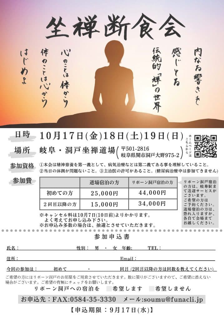 場 所:岐阜・洞戸人間禅道場(現地集合)