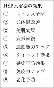 「この入浴法は毎日行うのではなく、週2回程度であり、この入浴法により最もHSPが上昇するのは入浴後2日目です。よって、何かのイベントがあり、パフォーマンスを上げるべき日(抗がん剤治療、出張など)の2日前にこの入浴法を実施することが有効です」(伊藤先生談)。
