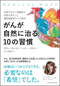 実はその後、この本の続巻が出ました。そのタイトルは「がんが自然に治る10の習慣」で、前巻の9項目に1項目増えたことになります。その増えた項目は何かと言うと、「運動」だったんですね。実は前著にも「運動」は書かれてありましたが、寛解した全員ではなかったためあえて除いたと書かれています。そして、新著の9項目については、前著と比較して若干表現の違いはありますが、もろもろエビデンスの記載が深まっています。とりわけ運動の重要性が強調され、10項目の1番目に記載されました。確かに運動し、筋肉を増やすことががん予防や延命につながるというデータがどんどん増えエビデンスが高くなっています。手術後の合併症すら運動をすることで減ると分かってから、現在大学病院ではオペ前にジムへ行く指導が始まったくらいです。ケリー・ターナーさんは「運動を生涯の習慣にする」とまで書いています。