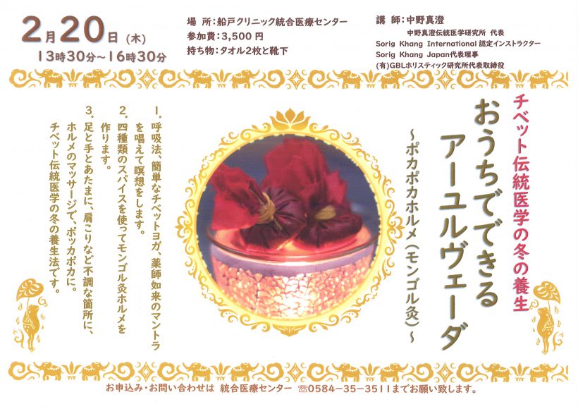 おうちでできるアーユルヴェーダ~ポカポカホルメ~開催のお知らせです